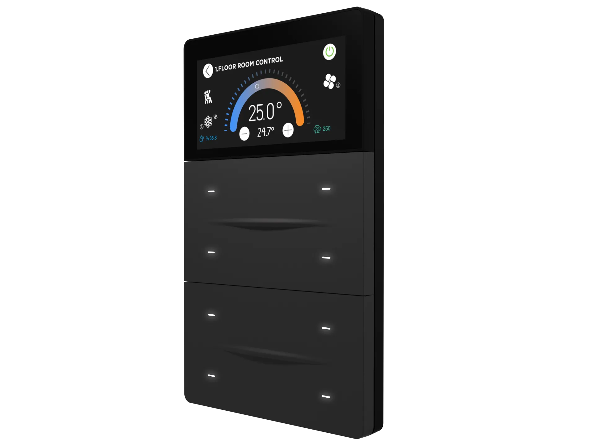 Die Interra iXm Serie definiert intelligentes Wohnen neu – wahlweise mit hochauflösendem Farb-Touchdisplay oder in einer minimalistischen, displaylosen Ausführung. Jedes Modell ermöglicht die intuitive Steuerung von Beleuchtung, HVAC, Musik, Jalousien und weiteren KNX-Funktionen – alles zentral über einen einzigen Wandbedienpunkt.